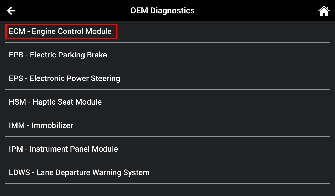 Step 2: Choose Engine Control Module (ECM)