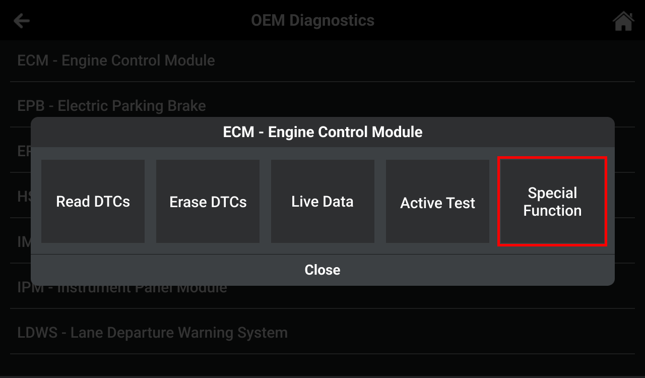 By following these steps, you can effectively utilize the Special Function feature on the Innova 7111 Tablet, specifically performing the Engine Control Module (ECM) Special Function. Please note that the availability of functions may differ based on the vehicle. If you encounter any questions or require further assistance, don’t hesitate to reach out to our support team. Your efficient and accurate diagnostics experience is our priority!